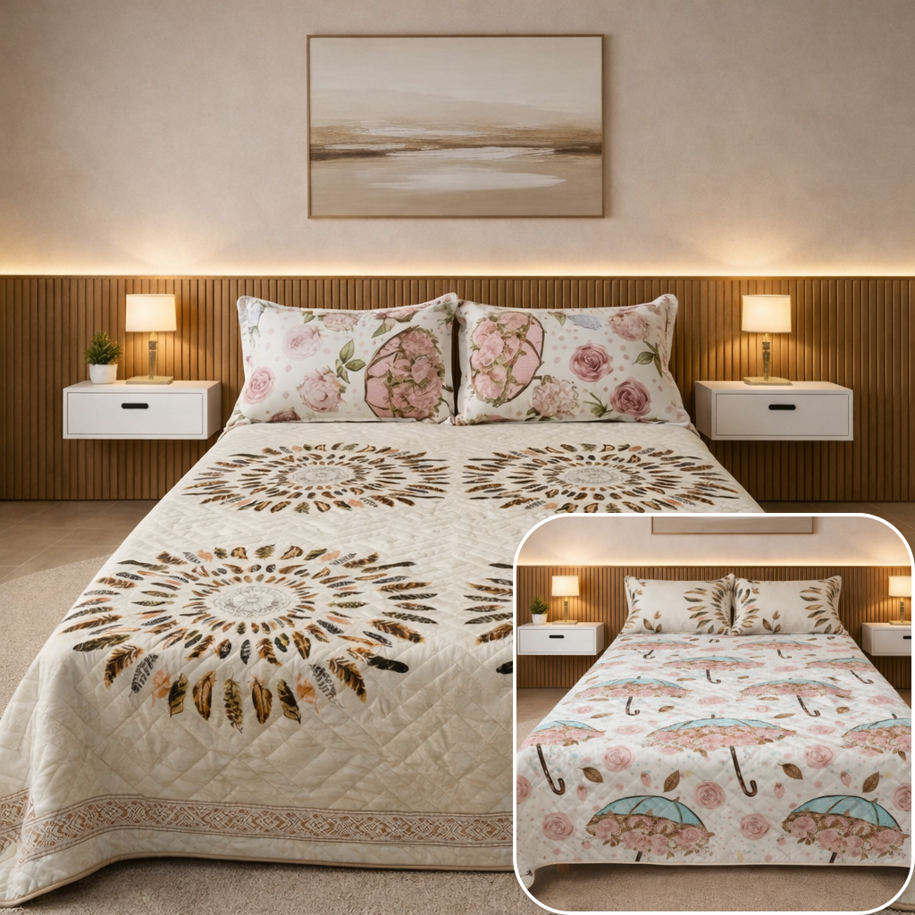 • 🛏️ Set completo: Colcha + fundas (según la medida).